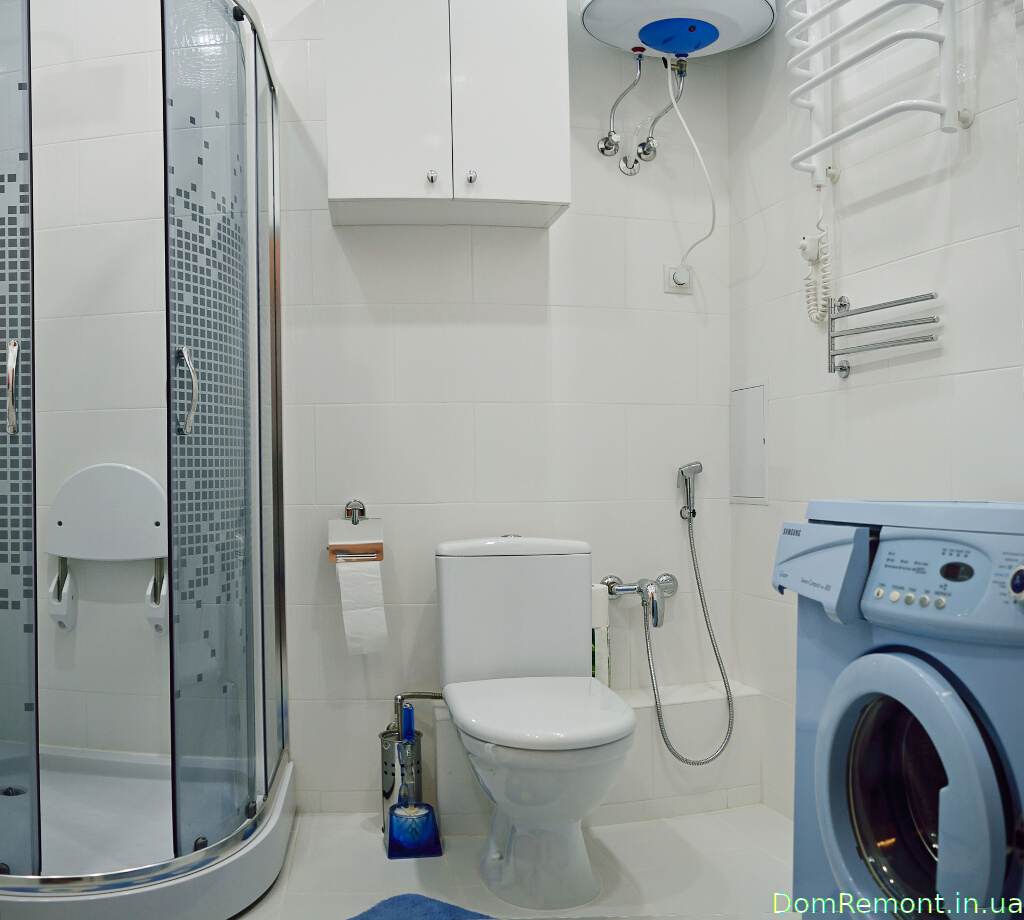 Стеля в санвузлі - натяжна, глянсовий білий.