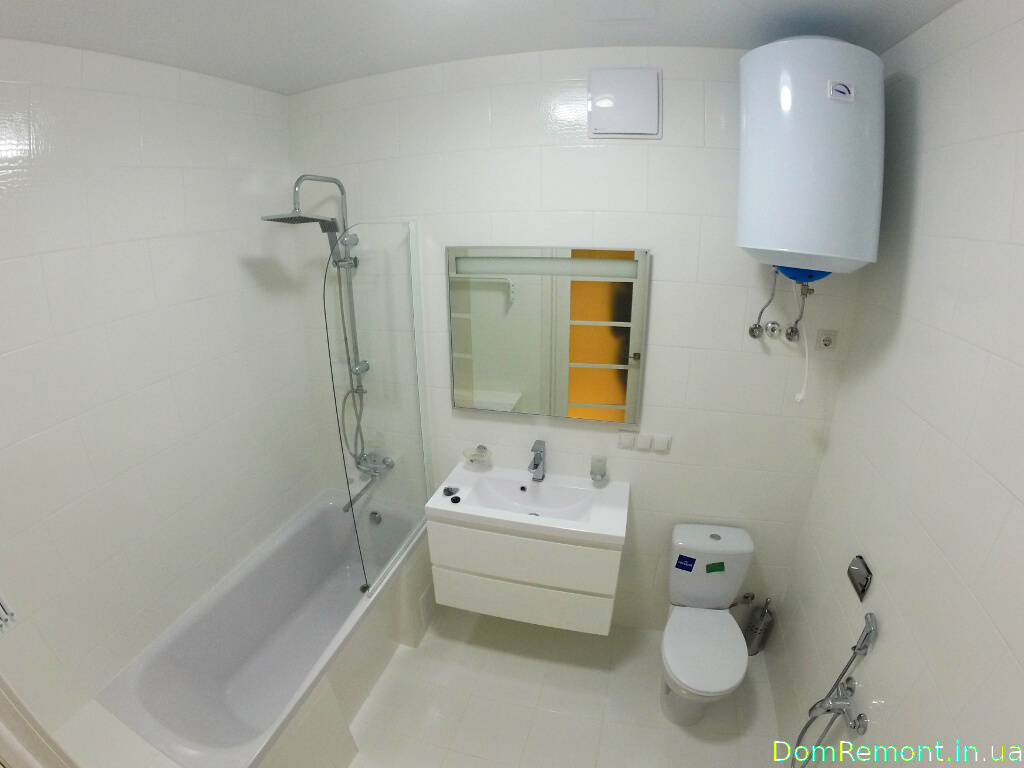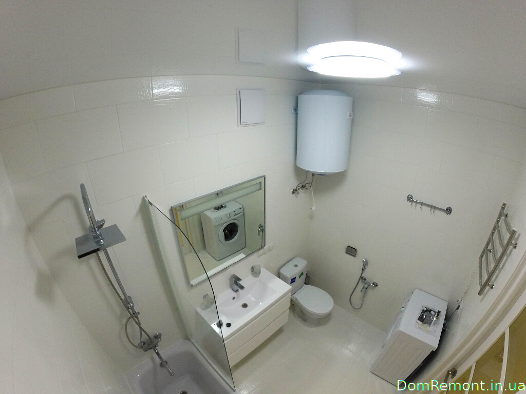 Електрощитова прихована за дзеркалом. Натяжна стеля у ванній - красиве і практичне рішення, яке захистить від затоплення сусідами зверху.