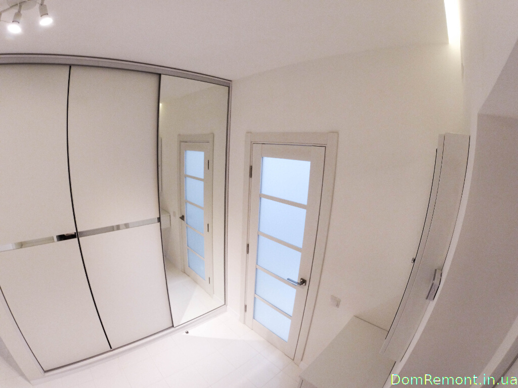 Біля входу в квартиру розташований місткий гардероб, прихований за системою скляних розсувних дверей; другий гардероб, оформлений так само, знаходиться в іншій кімнаті.
