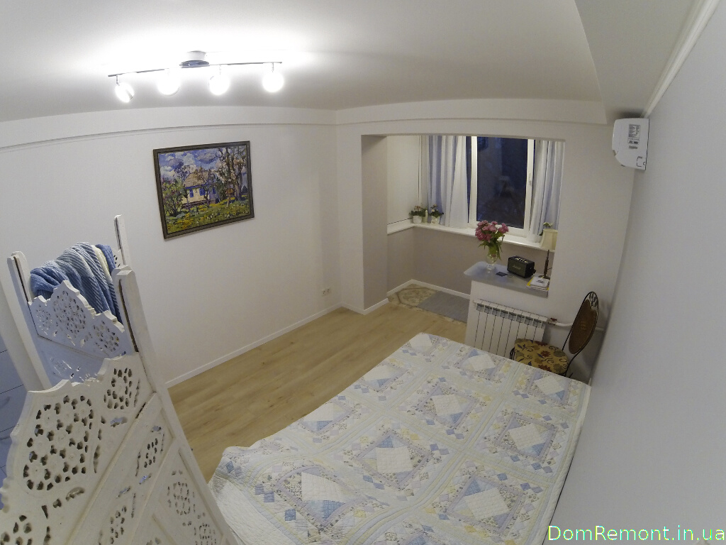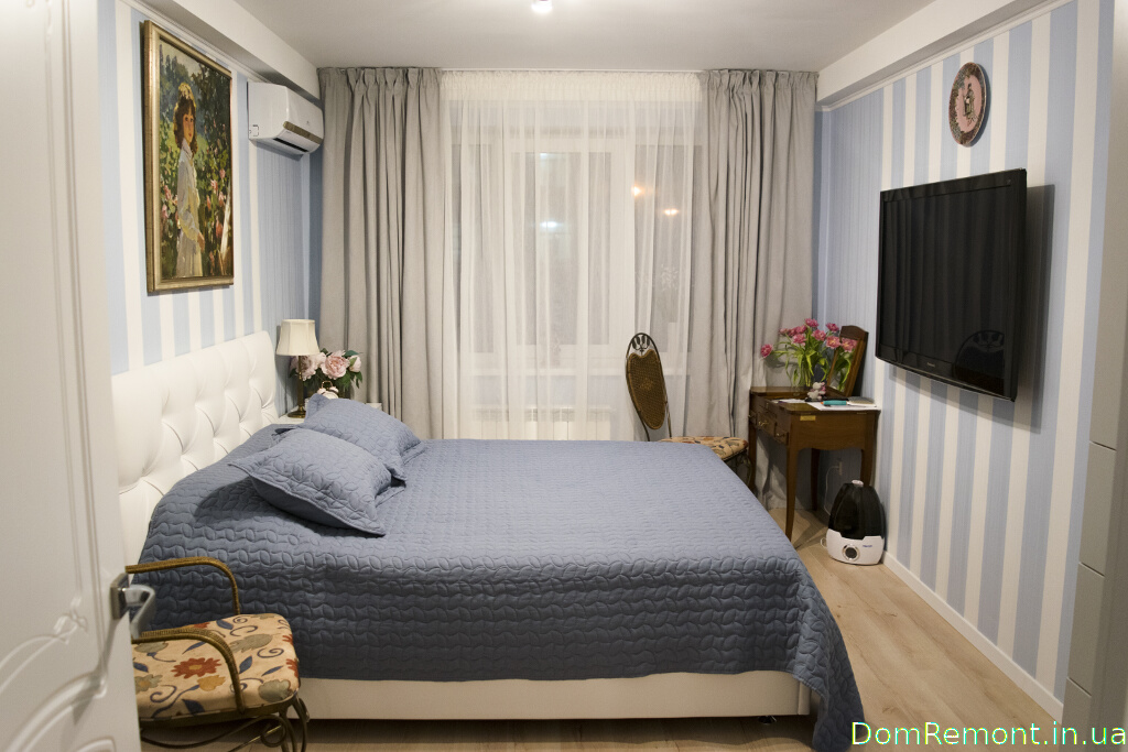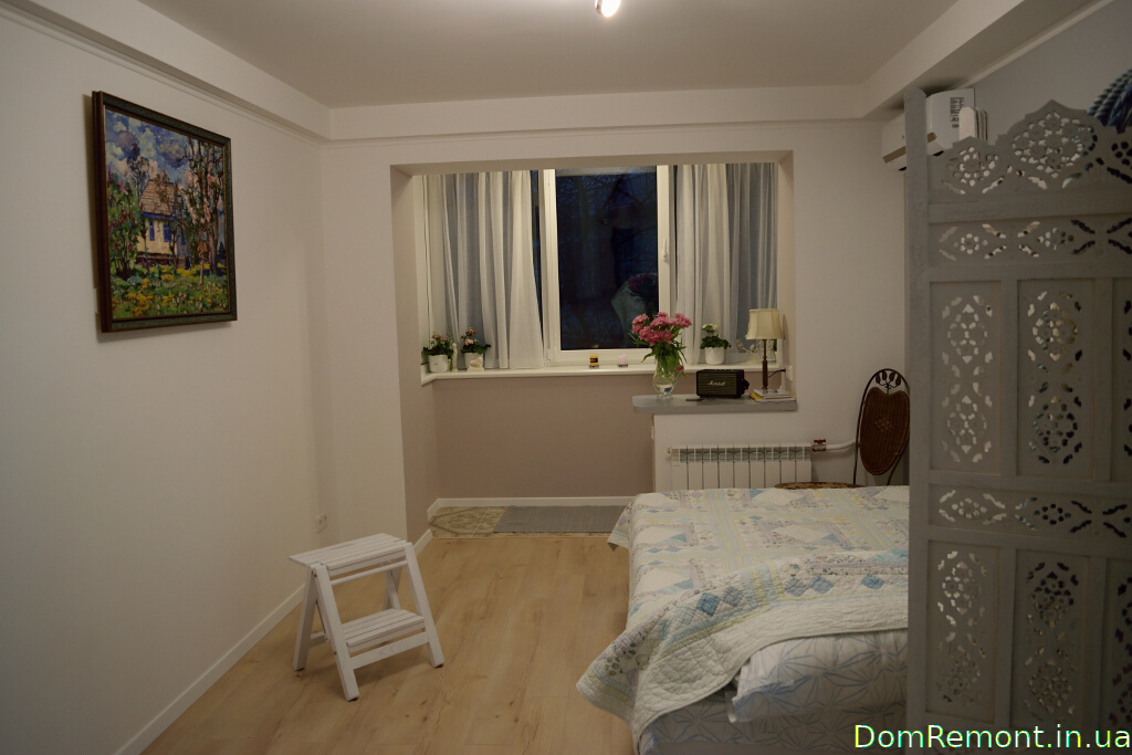 Завдяки частковому переплануванні і поєднанню простору балкона з кімнатою вдалося розширити житловий простір однієї зі спалень.